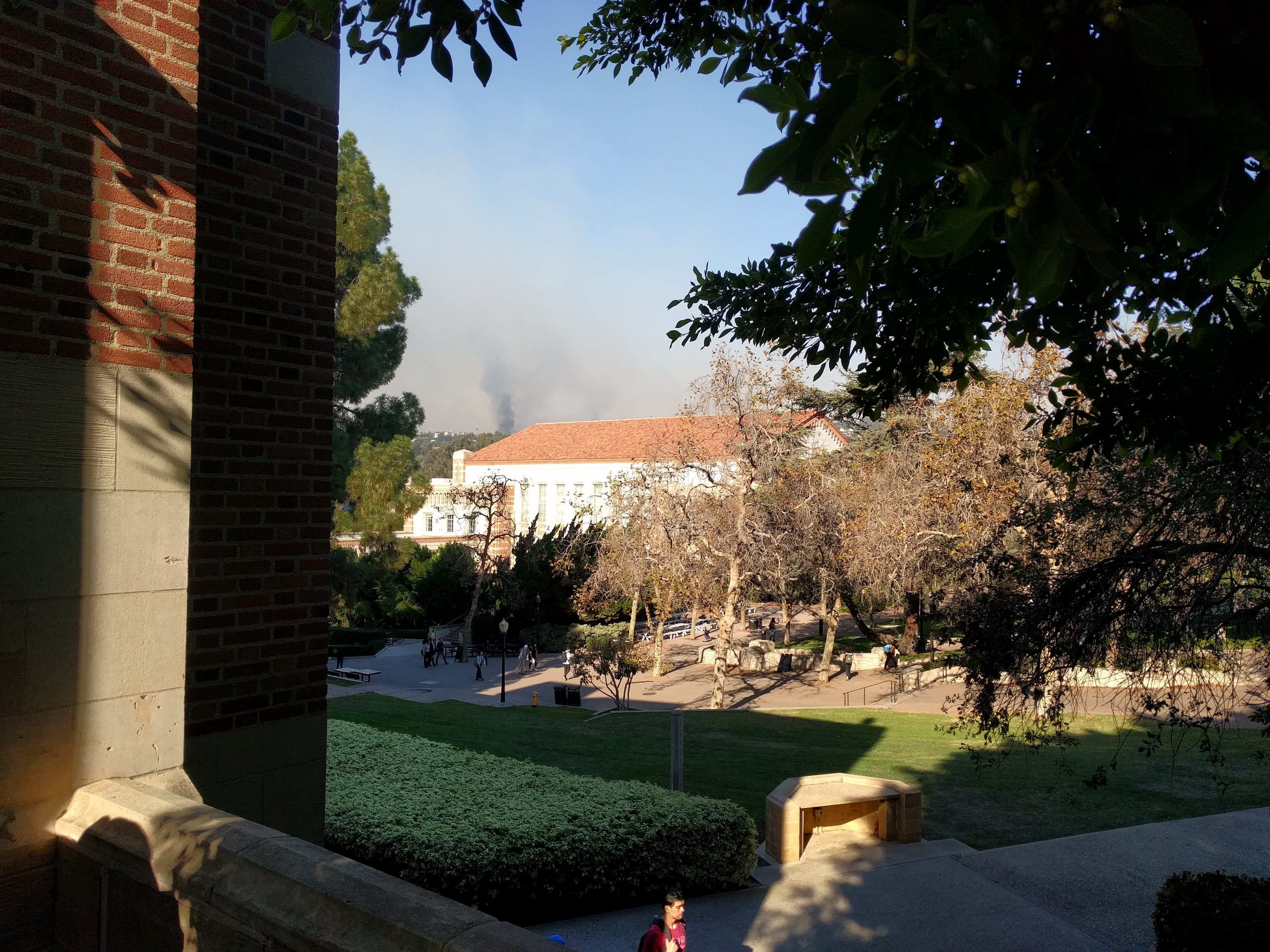 Bel Air mansion on fire as seen from Kerkhoff terrace, UCLA, at about 11 AM yesterday.